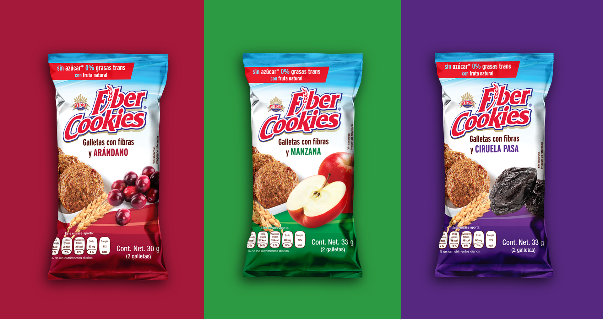 Packaging design for Fiber Cookies with Prune & Fiber Cookies with Cranberries specially designed for vendor machines. Practical packaging for your healthy snack!